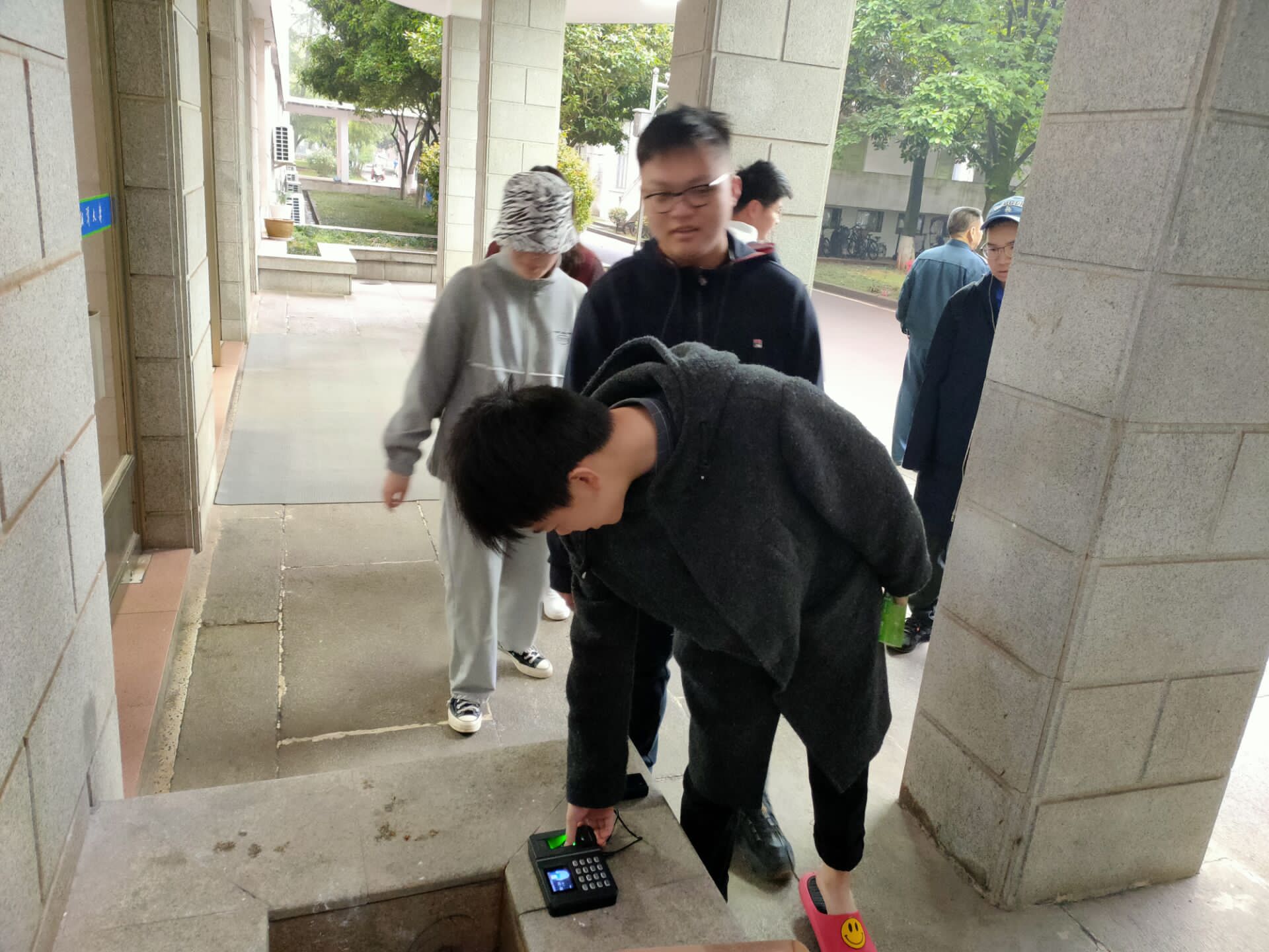 学生们可以在工作日的早6:30-7:00自由选择一教或三教作为打卡地点,每位同学每周需完成3次打卡。活动伊始,全体同学十分重视,积极参与,互相督促,他们早早走出寝室,配合负责打卡的党支部工作人员正确录入指纹信息。打卡完成后,有的同学去操场跑步,有的同学去教室背英语或者预习课本,大家以不同的方式充实自己,开启一天的学习生活。同学们在“早起打卡活动”这只闹钟的提醒下,一扫往日的慵懒,以良好的精神面貌开启崭新的每一天,早起奋发的身影形成了湘大清晨校园里一道道亮丽的风景线。