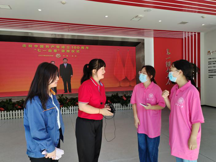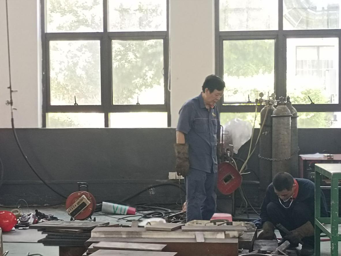 随后,在焊接工作区,调研团见到了正在亲自进行工作的艾老,艾老是2021年七一勋章获得者之一,已经72岁高龄的他,仍坚守在工作岗位第一线,终日奋战在高温火花中,只为我国焊接事业贡献力量。艾爱国身上体现着一生择一事,一事成一生的高尚精神,调研团的成员深受感染,也因此领悟到个体之于社会的重要意义,深刻体会到以精益求精、坚守创新、坚韧执著为美好品质的工匠精神。