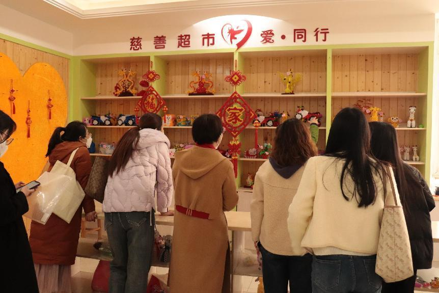 在福利院负责人的带领下,老师和同学们参观了慈善超市,了解到超市出售的工艺品全部来自于福利院老人儿童的手工制作,并义购了一些手工艺制品,以星火之微助爱心传承、唤燎原之势,以此来表达对福利院的支持和对老年人的关爱、慰问。