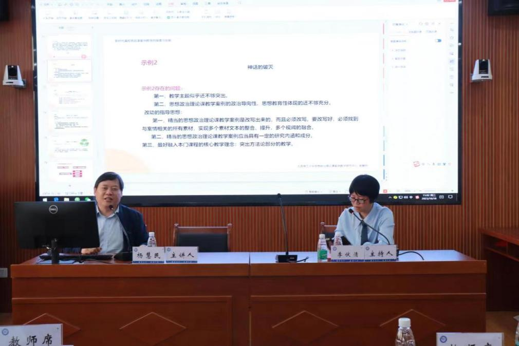 最后,杨教授从教学内容的选定、教学案例的选编、讨论题的设计和课堂讨论的组织四个方面具体阐述了案例教学的组织实施。杨慧民教授通过研究与实践,将思政课程与案例教学法有效融合并凝练成理念和成果,让参加讲座的每个师生加深了对案例教学法的理解,以及对如何高水平开展案例教学有了全新的认识,为开展以案例教学为模式的教学改革提供了一条借鉴之路,推动教师从有效教学向高效教学、魅力教学迈进。