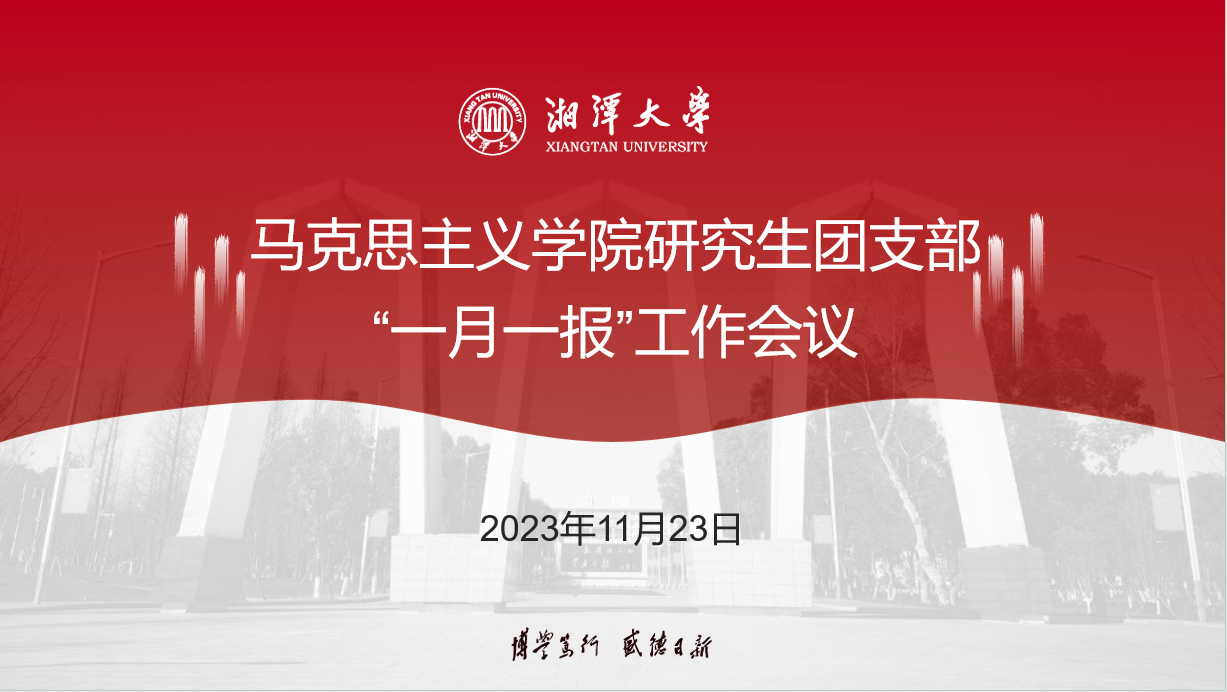 根据《关于实施基层团支部“活力提升”工程的通知》相关要求,为扎实推进基层团组织规范化建设,不断巩固基层团支部基础职能,提升基层团支部活力,2023年11月23日下午三点,bevictor伟德官网研究生团总支部在毛泽东思想研究大楼北202教室召开各团支书“一月一报”工作会议,团总支书记唐辉洋主持会议。
