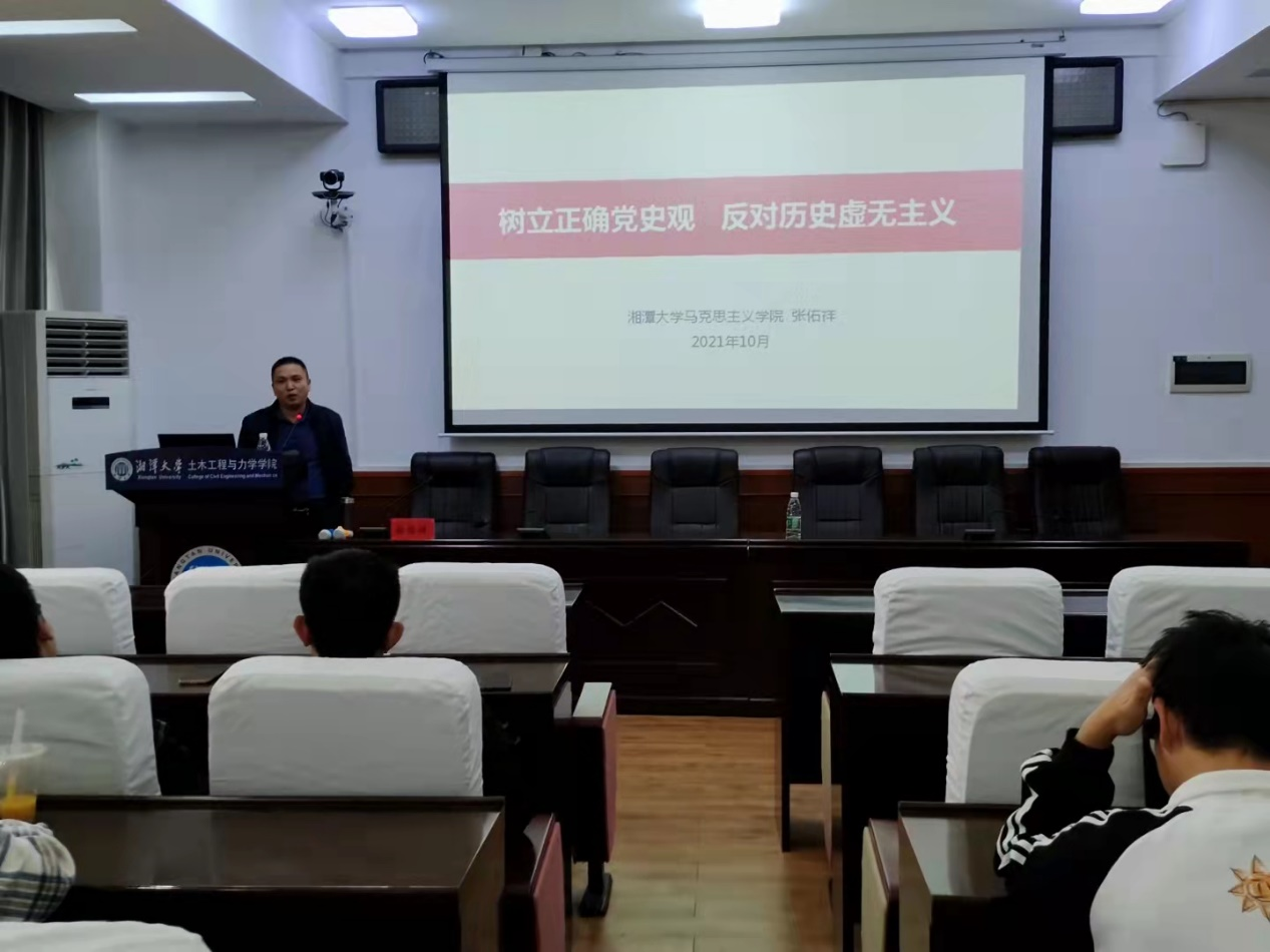首先,张佑祥书记给学员们讲授了以“树立正确党史观、反对历史虚无主义”为主题的专题讲座,教育在座的入党积极分子要学党史、知党情、跟党走。他向学生们讲述了什么是正确的党史观,什么是历史虚无主义,并且运用了习近平总书记在党史学习教育动员大会上的讲话以及《方方日记》事件等教导学生为什么要树立以及怎样去树立正确的历史观。张佑祥书记还重点讲解了历史虚无主义的实质、特点和危害,告诉我们历史虚无主义极具迷惑性、隐蔽性和危害性,启示学生要认真辨析,正确应对,树立正确的历史观,坚定爱党信念。