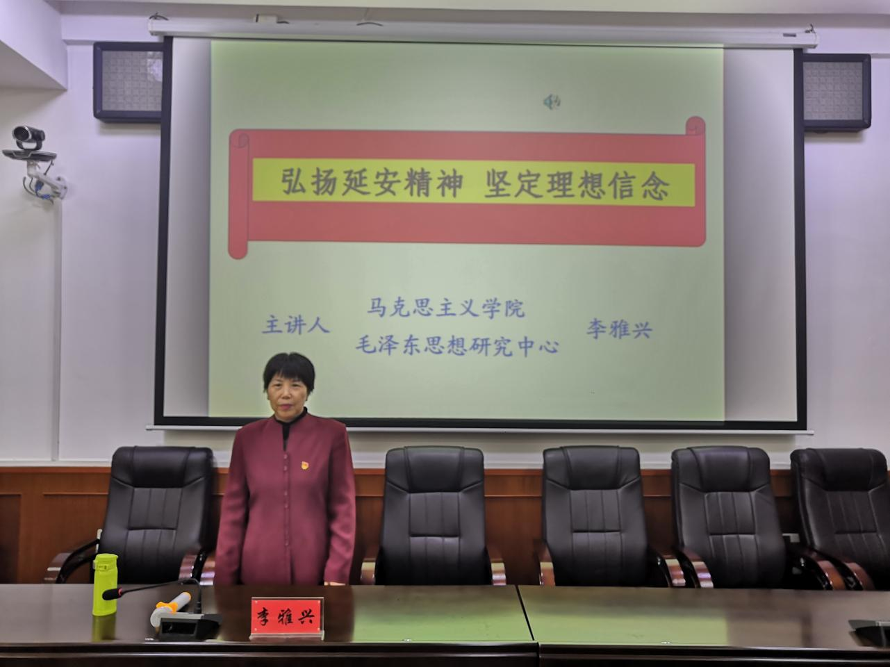 接着,李雅兴老师讲授了以“弘扬延安精神,坚定理想信念”为主题的讲座。在讲座开始时,李雅兴老师用一段生动有趣的视频,把我们的视线拉向中国的革命圣地——延安。老师与同学们亲切互动,共同交流对“延安精神”的理解,并通过大量生动的历史事例,从理论和实践多个角度向学员们诠释“延安精神”的内涵及其当代意义,并鼓励学员们要积极传承“延安精神”中实事求是、艰苦奋斗等精神内核,为中华民族伟大复兴中国梦的实现贡献青春力量!(图文:王甜 龙伊玲)
