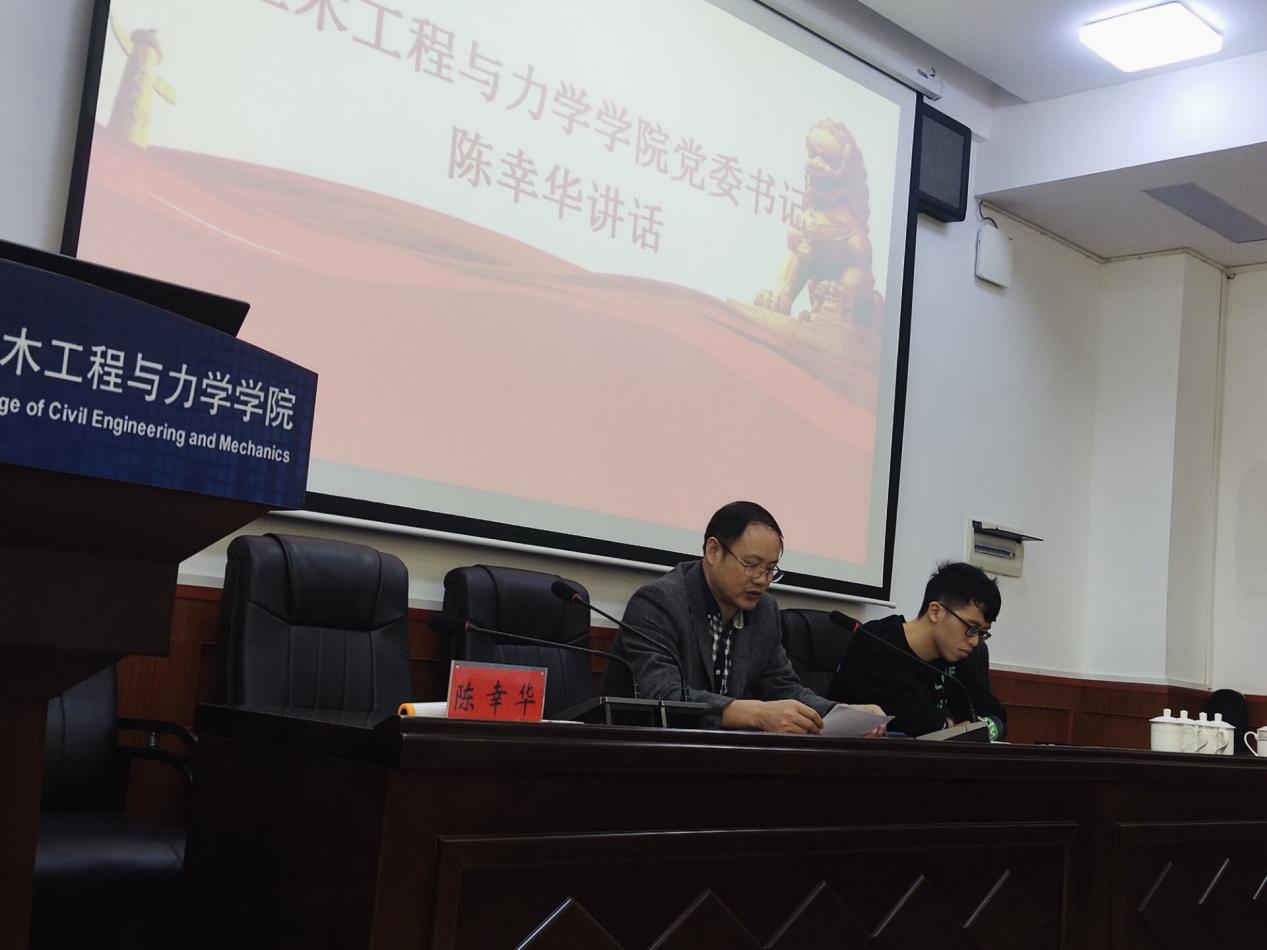 图为土木工程与力学学院陈幸华书记讲话