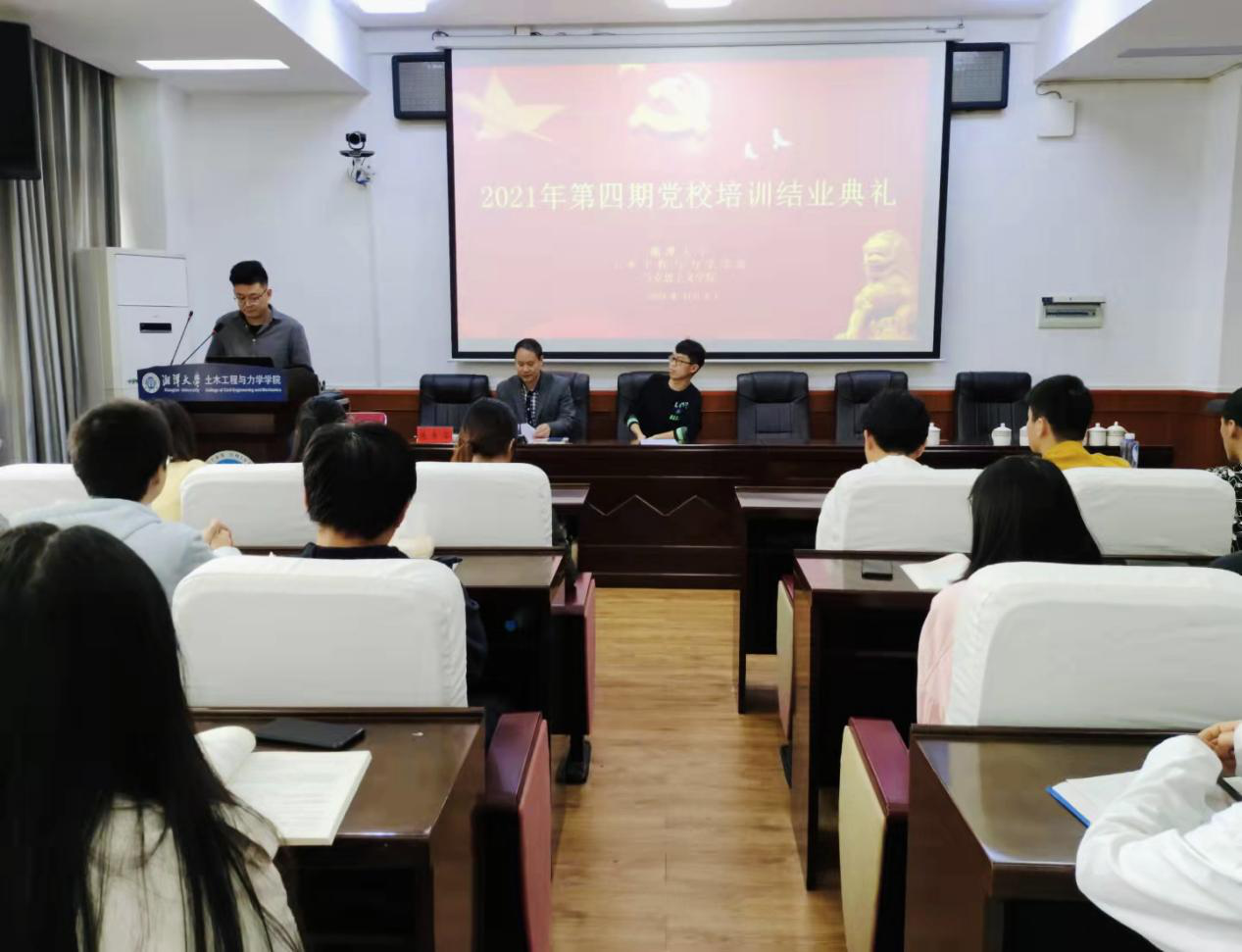 11月6日上午10:30至12:30,湘潭大学党委党校bevictor伟德官网、土木工程与力学学院2021年第四期发展对象培训班第六次专题讲座暨结业典礼在土木楼A217学术会议室隆重举行。结业典礼由bevictor伟德官网分党校何飞翔同学主持,湘潭大学土木工程与力学学院党委书记陈幸华、研工办邓彪老师出席结业典礼并发表讲话,全体发展对象准时有序地参加了此次讲座和结业典礼。
