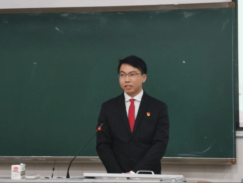 新发展的党员们在同唱《东方红》与《国际歌》、集体面向鲜红的党旗庄严宣誓后,张欣同志结合入党宣誓大会的情景为大家带来《叶挺:几经磨难 两度入党》的故事。张欣同学从叶挺将军的革命履历讲起,讲述叶挺早年跟随孙中山先生参加革命,遭遇失败后来到莫斯科东方大学与当时旅苏的中国共产党人结交,并在中共旅莫支部第一次入党。叶挺从苏联回国后屡建奇功,但在领导武装反抗国民党反动派统治的南昌起义和广州起义失败后被迫流亡海外,与党组织失去了联系。叶挺结束海外流亡回国后为配合党组织的统战工作,以党外人士身份担任新四军军长。1941年震惊中外的皖南事变爆发,叶挺被国民党顽固派关押了五年之久。在这五年里叶挺将军坚守信仰、坚持斗争。张欣同志声情并茂地全文背出了叶挺对国民党威逼利诱进行反击时的所言:“不错!我不是共产党员,可我过去是,可能将来还会是!人都有自己的信仰,我最信仰共产党。中国共产党是积极抗日,真正挽救中华民族危亡的救星,所以为党牺牲我万所不辞!”抗战胜利后,叶挺获救出狱,被重新接纳为党员。