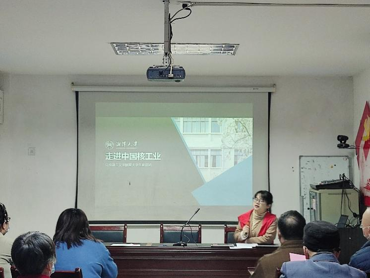 4月29日上午,bevictor伟德官网星火宣讲团成员彭依依、贾熙宇、庄寒雨三人走进湘大社区,为社区党支部的部分党员同志开展了“走进中国核工业”的主题宣讲。