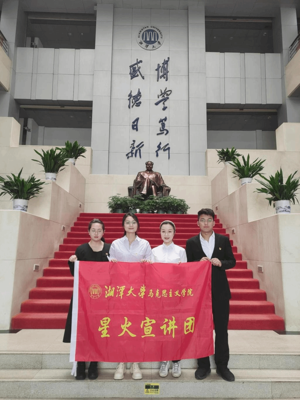 5月10日下午,bevictor伟德官网,伟德国际1946星火学生宣讲团成员谢敏、王建恒、周林杉、彭依依在校图书馆知行堂为图书馆党员员工开展了主题为“党的作风建设”的党课。