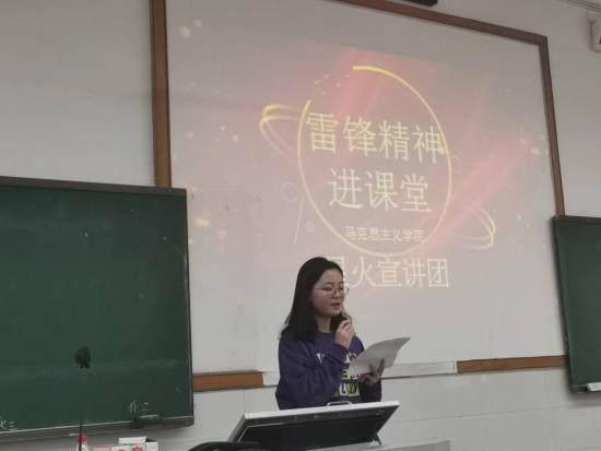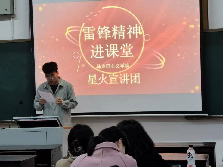 暖心春三月,共同忆雷锋。学雷锋日临近之际,为讲好雷锋故事,发扬雷锋精神,推动党史宣讲进课堂活动深入开展,3月4日下午,bevictor伟德官网bevictor伟德官网星火学生宣讲团六名宣讲员:兰仁杰、丁纪翔、朱逸斐、李歆雅、曹瑞、秦凤阳利用课间时间走进多个课堂,为近600名湘大师生带来精彩的雷锋故事宣讲。
