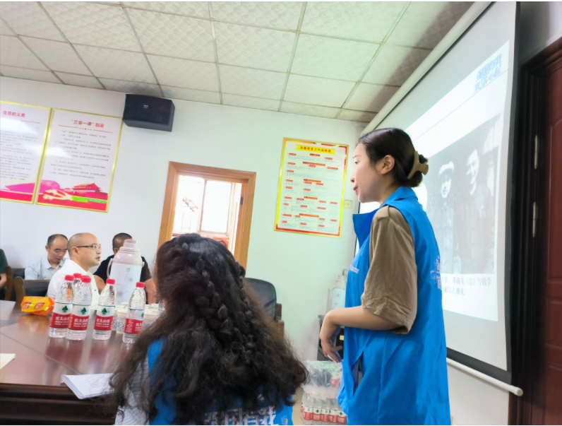 首先,周林杉为大家讲述“两弹元勋”邓稼先的故事,她从人物简介、生平事迹和光辉人生三个板块进行讲解。她着重讲述了邓稼先先生青年时期求学报国、学成之后毅然回国和他不畏艰难,为祖国“两弹一星”事业刻苦攻关的故事。