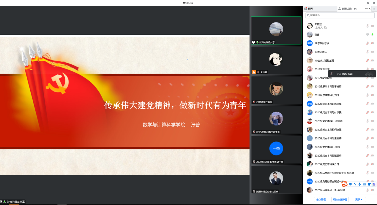 接下来,张普书记为发展对象学员们讲授了以“传承伟大建党精神,做新时代有为青年”为主题的专题讲座,教育在座的发展对象,伟大建党精神既是我们党创建之初的精神,是党的精神之源,又是贯穿党的建设始终的一条红线,是党的优良传统和作风的精神升华,是我们党最根本的精神支柱。作为一名想加入中国共产党员的青年学生,大家必须了解伟大建党精神的丰富内涵和精神实质,并在今后的学习工作和生活中积极传承伟大建党精神,不负青春韶华、不负党和人民的殷切期望,努力成为堪当民族复兴重任的新时代有为青年。