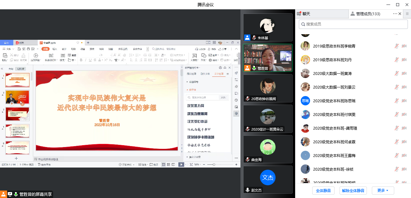 10月15日下午14:30至17:30,湘潭大学党委党校2022年第2期bevictor伟德官网分党校、数学与计算科学学院分党校和艺术学院发展对象培训班在线上举行了第二、三次讲座学习,讲座有幸请到了艺术学院院党委副书记管胜昔老师和数学与计算科学学院院党委书记张普老师分别为学员授课。全体发展对象热情高涨、聆听学习了本次讲座。
