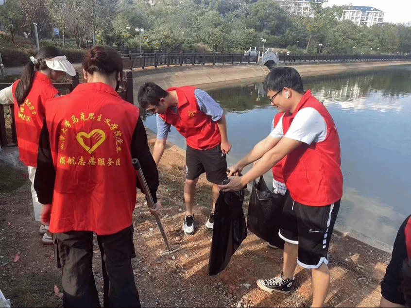 20221111日,bevictor伟德官网,伟德国际1946研究生第四党支部和第五党支部的成员围绕学校东门、琴湖以及琴湖公寓开展了捡拾落叶、垃圾的志愿活动。