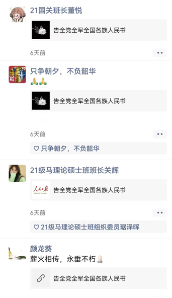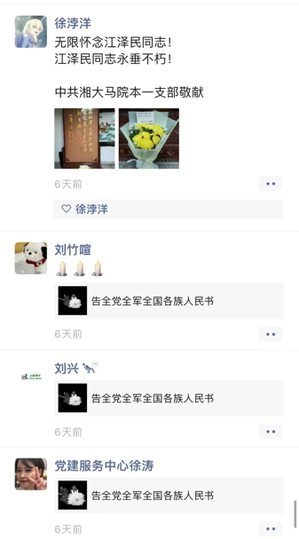 今天,江泽民爷爷同我们永别了。江爷爷的一生,是伟大的光辉的战斗的一生。在70多年的革命生涯中,江爷爷对共产主义理想坚贞不渝,对党和人民无限忠诚,将毕生心血都献给了党和人民的事业。一江春水泽万民,江爷爷千古,永远活在我们的心中!作为新时代的青年,作为一名党员,我们一定要坚定理想信念,保持只争朝夕、奋发有为的奋斗姿态,为实现中华民族伟大复兴贡献一份力量。