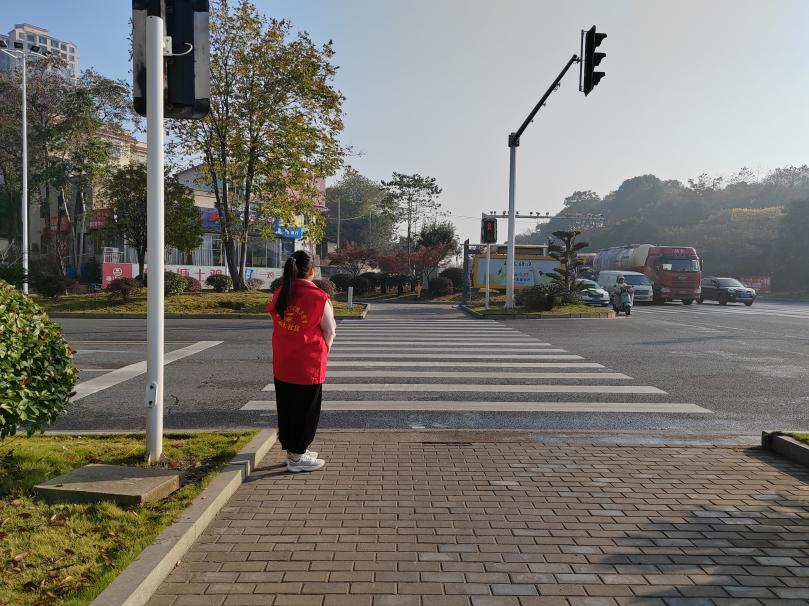 在斑马线前,志愿者身着红马夹,劝导行人过马路遵守交通规则,注意安全信号灯,不闯红灯,不乱穿马路,不跨越护栏,倡导大家佩戴头盔,系好安全带,并帮助行动有困难的市民安全过马路。斑马线引导活动的开展,倡导了安全出行、文明出行的理念,提高了广大群众文明交通安全意识。