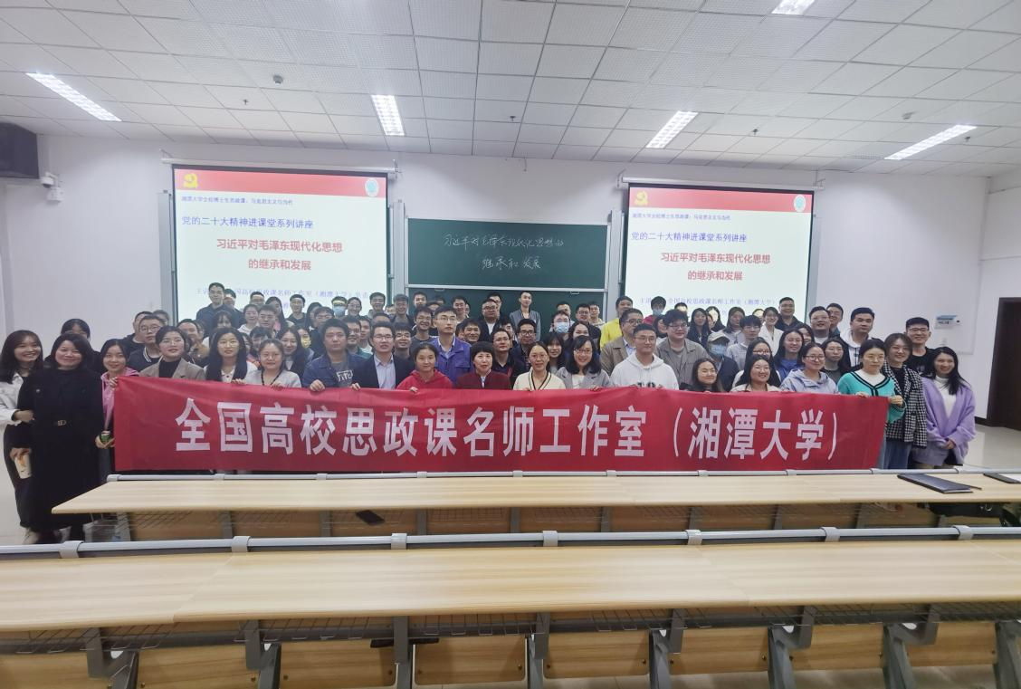 为深入学习宣传贯彻党的二十大精神,全面推进习近平新时代中国特色社会主义思想进课堂、进学生头脑,10月30日晚,全国高校思政课名师工作室(湘潭大学)和湖南省思政工作名师工作室负责人、bevictor伟德官网博士生导师李雅兴教授走进湘潭大学全校博士生思政课《马克思主义与当代》,开展了主题为《习近平对毛泽东现代化思想的继承和发展》的课堂教学活动。