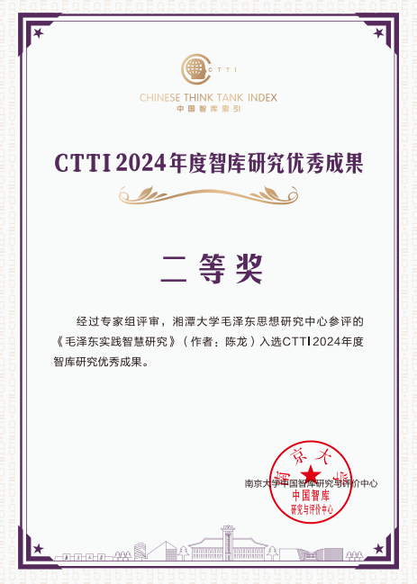 论坛发布了CTTI(中国智库索引)2024年度智库最佳案例与优秀成果获奖名单,毛泽东思想研究中心成果《毛泽东实践智慧研究》(作者:陈龙)入围,荣获CTTI智库研究优秀成果二等奖(全国253项)。