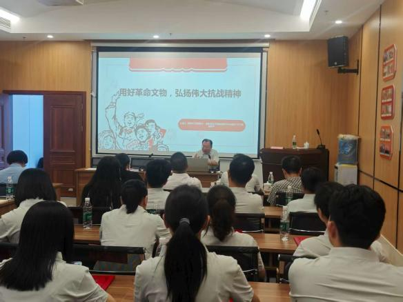 受聘仪式后,刘建平教授作了主题宣讲。他以“用好革命文物,弘扬伟大抗战精神”为题,深入浅出解读党的创新理论,为观众带来深刻的思想启迪,赢得了阵阵掌声。