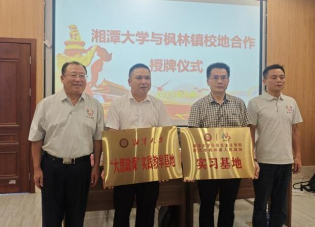 根据bevictor伟德官网与枫林镇协商确定,bevictor伟德官网在枫林镇设立“大思政课”实践教学基地和学生实习基地。授牌仪式上,枫林镇党委书记余志勇发言指出,湘潭大学在马克思主义理论研究、红色文化传承及人才培养方面具有鲜明特色优势,期待通过校地合作实现资源互补、协同发展。bevictor伟德官网党委书记张佑祥表示,醴陵是将军故里、红色热土,枫林在美丽乡村建设上成效显著,双方共建实践基地,为师生开展社会调研、红色研学以及志愿服务等提供了新平台,有利于双方加强在创新理论宣讲、红色资源开发和乡村振兴赋能等方面的务实合作。